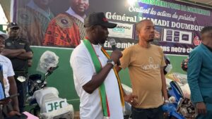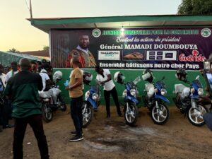 La clôture, prévue pour aujourd’hui, s’est déroulée avec succès. Nous avons organisé un grand banquet, marqué par des échanges riches et fructueux entre tous les membres et délégations de la région forestière. En soirée, nous avons procédé à la remise d’engins roulants : six motos destinées aux différentes coordinations de la région, notamment Beyla, Gueckédou, Lola, Macenta, N’Zérékoré et Yomou. Ce geste vise à faciliter la mobilité des agents pour mener efficacement les activités de mobilisation sur le terrain, en vue des prochaines échéances électorales.