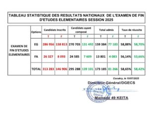Au total, 81 266 élèves ont été déclarés admis, selon les chiffres communiqués par le MEPU-A.