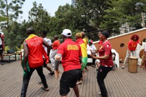 Dans un complexe hôtelier situé en périphérie de Kampala, les sons des tambours, balafons et autres instruments traditionnels résonnent avec vigueur. Pendant près de deux heures, les membres du CNSG enchaînent les répétitions, mêlant chants patriotiques et danses typiquement guinéennes. L’objectif est clair : insuffler une énergie positive à l’équipe nationale et faire vibrer les gradins du stade.