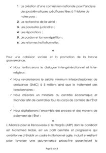 Le vendredi 6 décembre 2025, le parti Alliance pour le Renouveau et le Progrès (ARP) a présenté sa deuxième déclaration à l’intention de ses militantes, militants et sympathisants, dans le cadre de la campagne présidentielle de 2025.