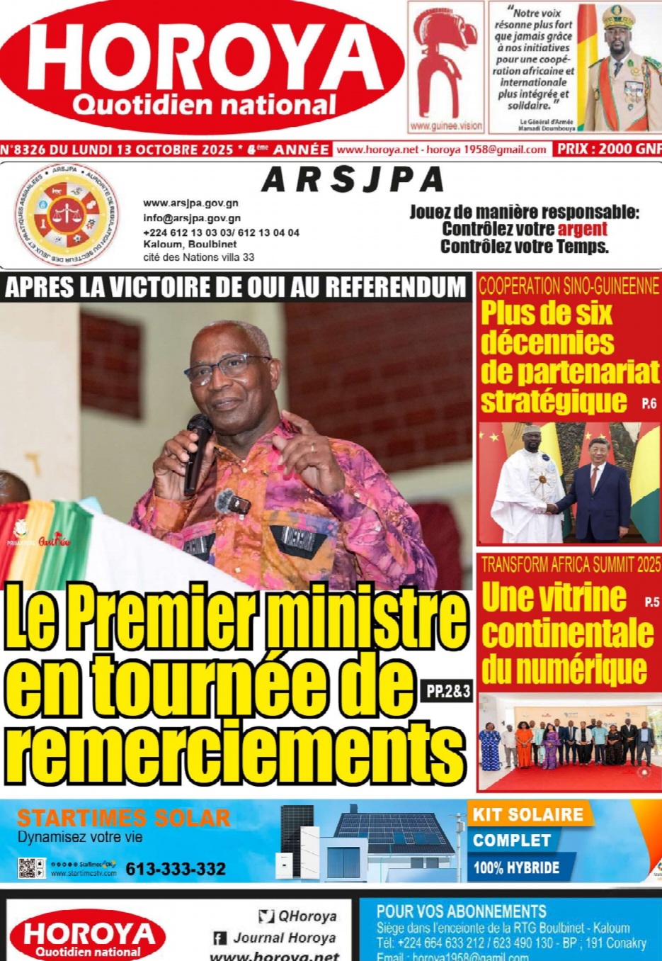 Le Premier ministre, Amadou Oury BAH, a présidé ce vendredi 17 octobre, la cérémonie de clôture de la 6ᵉ édition…